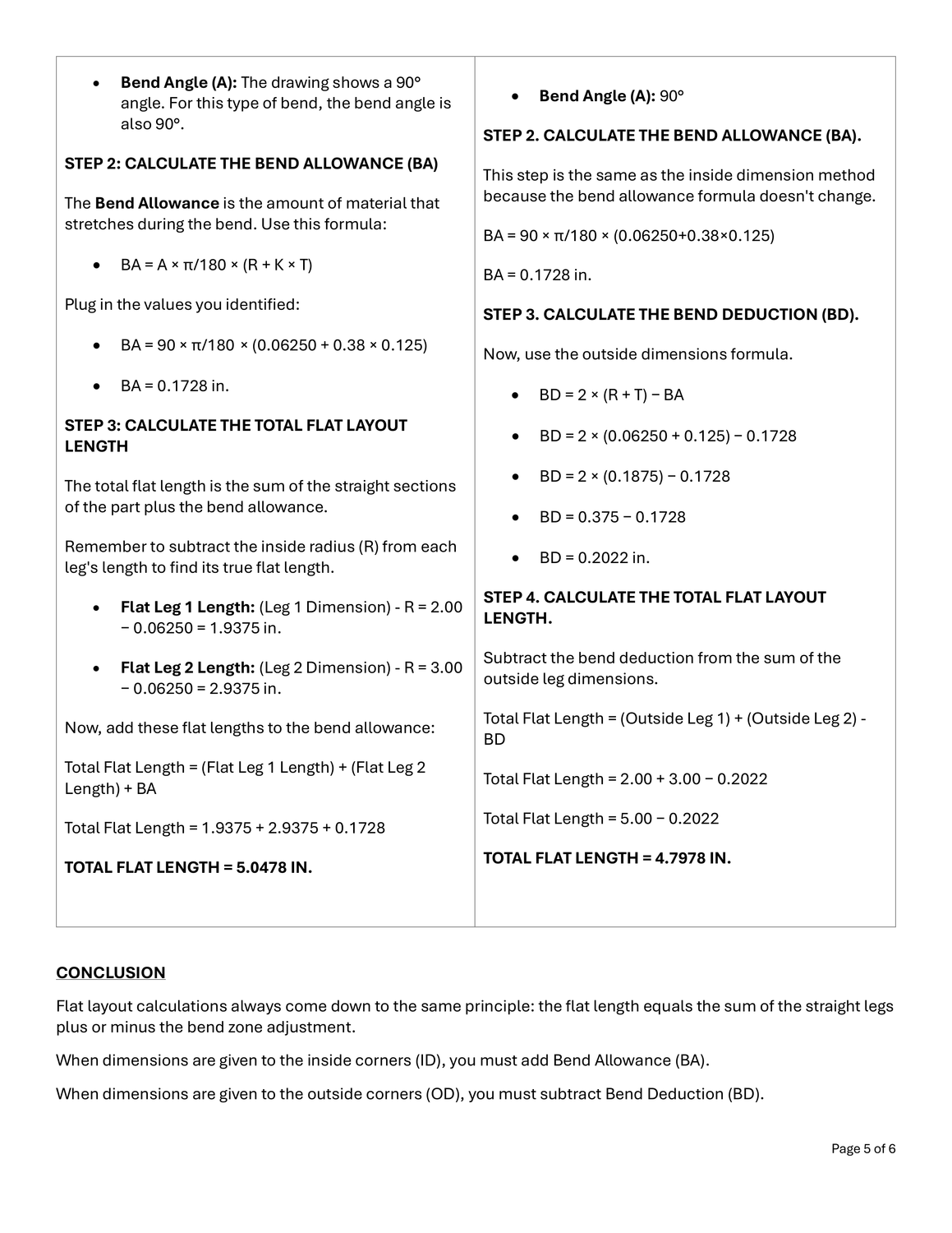 What bend angles are covered? The example shows a 90°, and the formulas apply to any angle. Just plug in the angle.